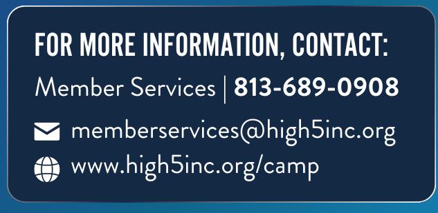 Camp is offered Monday through Friday from 7 a.m.-6 p.m. at High 5 Inc., located at 405 Beverly Blvd. in Brandon. Campers can sign up for individual weeks or throughout the entire summer. Visit
