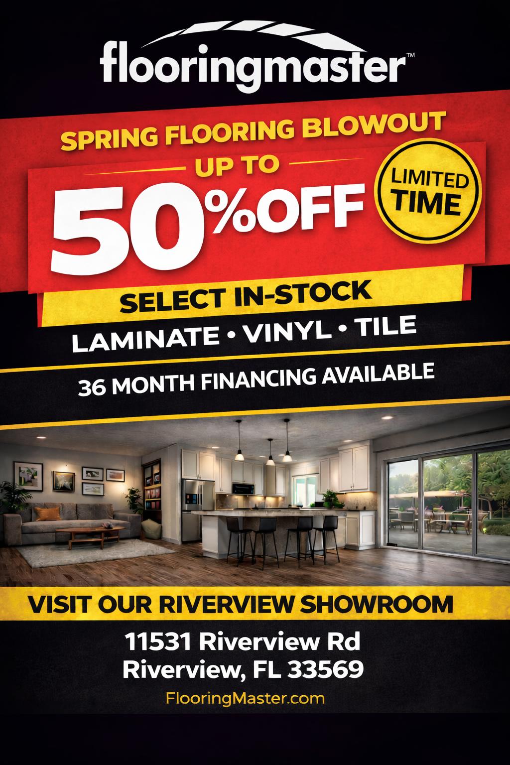 Please stop by the Flooring Master Riverview location, at 11531 Balm Riverview Rd., and say hello. It would truly appreciate the opportunity to earn your business. Visit its website at www.flooringmaster.com for more information about the services offered.
