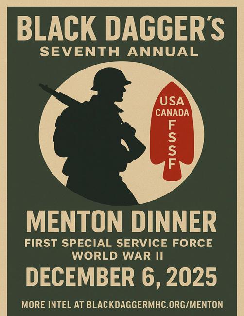 The Black Dagger Military Hunt Club will host its seventh annual Menton Dinner on Saturday, December 6, at The Regent in Riverview, honoring the legacy of the First Special Service Force (FSSF) — the elite World War II unit known as the ‘Devils Brigade’ — and the generations of special operations warriors who have followed in their footsteps.