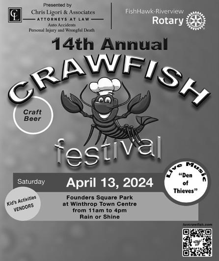 CELEBRATING 22 YEARS OF PUBLISHING POSITIVE COMMUNITY NEWS Osprey Observer 2109 Lithia Pinecrest Rd. Valrico, FL 33596 ECRWSS EDDM Postal Customer PRSTD STD U.S. POSTAGE PAID TAMPA, FL PERMIT #2118 March 2024 Volume 19, Issue 3 Ph: 813-657-2418 See Our Summer Camp Brandon/Winthrop 37 Serving Lunch and Dinner Every Day! Late Night Happy Hour 10 p.m. - 12 a.m. Friday & Saturday DINE IN ONLY. NOT AVAILABLE FOR TO GO. A MODERN DAY IRISH PUB $2.00 OFF DRAFT BEER, WELL LIQUOR, AND WINE It’s that time of year… Have you thought about your calendar and how you will keep your children busy and engaged during the summer months? Trying to narrow down options that appeal to your children’s interests can be a challenge. See Section 2 for a lisitng of local camps in our area! SELECT DATES mar. 9 – may 19 Concerts included with admission! Sip & savor through flavorful eats Read About Concert Lineup On Page ___ 23