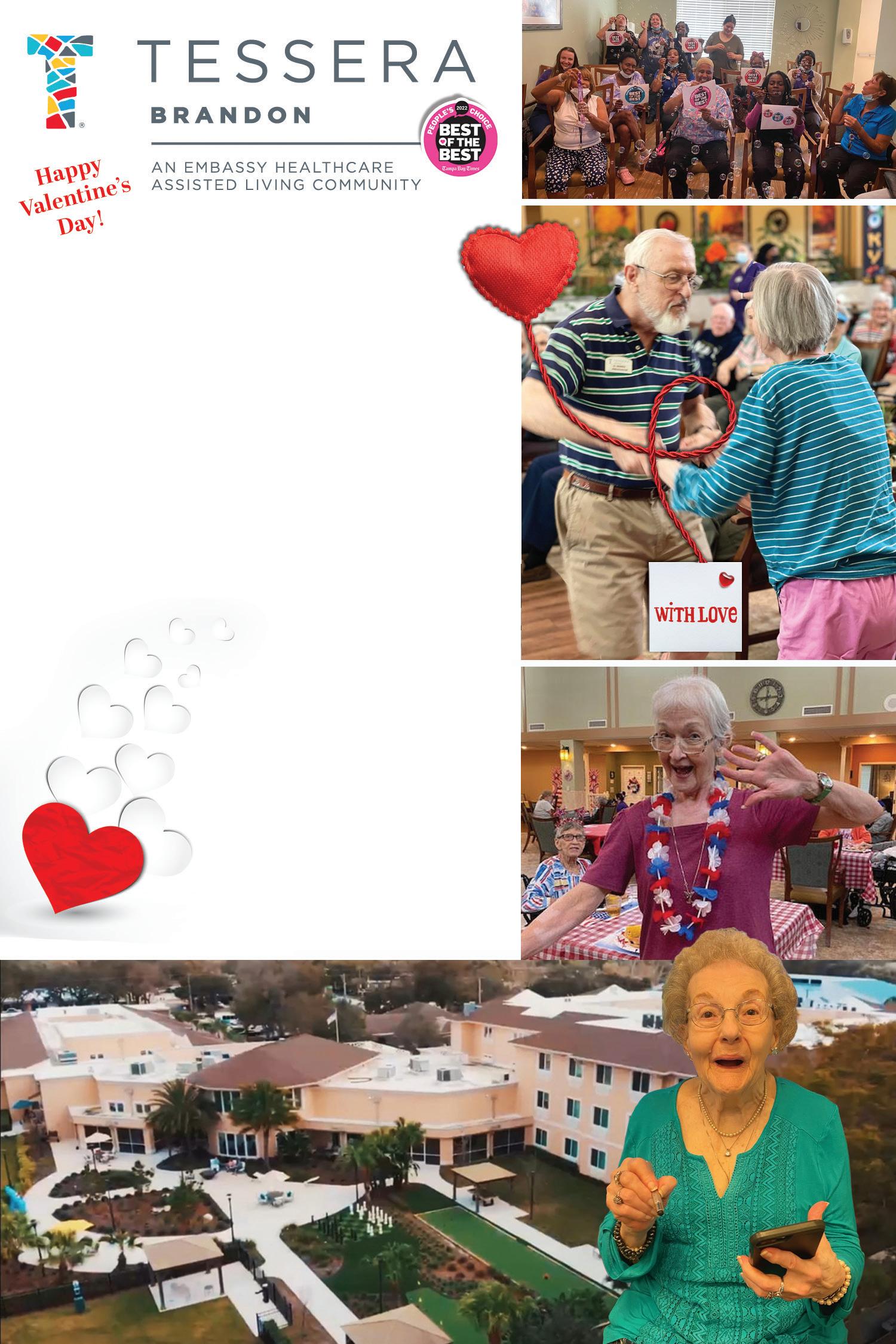 Page 4 Bloomingdale/FishHawk Edition Volume 22, Issue 2 Fall in Love With Osprey Heights At Osprey Heights, all of our amenities are included in one reasonable monthly rent. We take care of the cooking, cleaning, and yardwork, leaving you the time to enjoy your retirement. We’ll even drive you to appointments, shopping, and other outings. 2808 Lithia Pinecrest Rd, Valrico, FL 33596 OSPREY HEIGHTS We’re fi lling fast! Call today: 813-437-3734 LIFESTYLE STARTING AT $2695 EVERYTHING IS INCLUDED EXCEPT PERSONAL PHONE