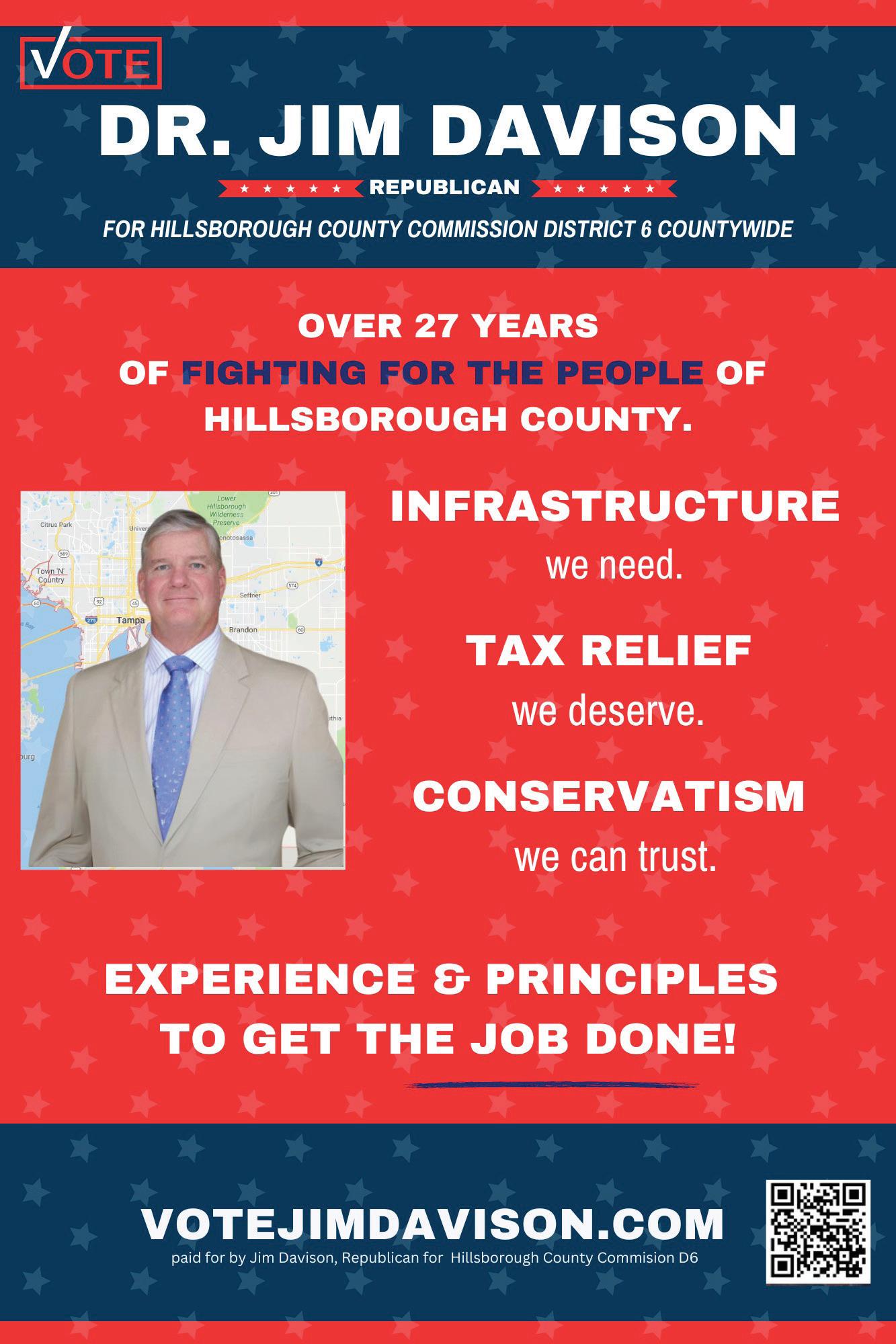For more information about Davison, visit www.votejimdavison.com. To learn more about the Hillsborough County Board of County Commissioners, visit https://hcfl. gov/government/board-of-county-commissioners.