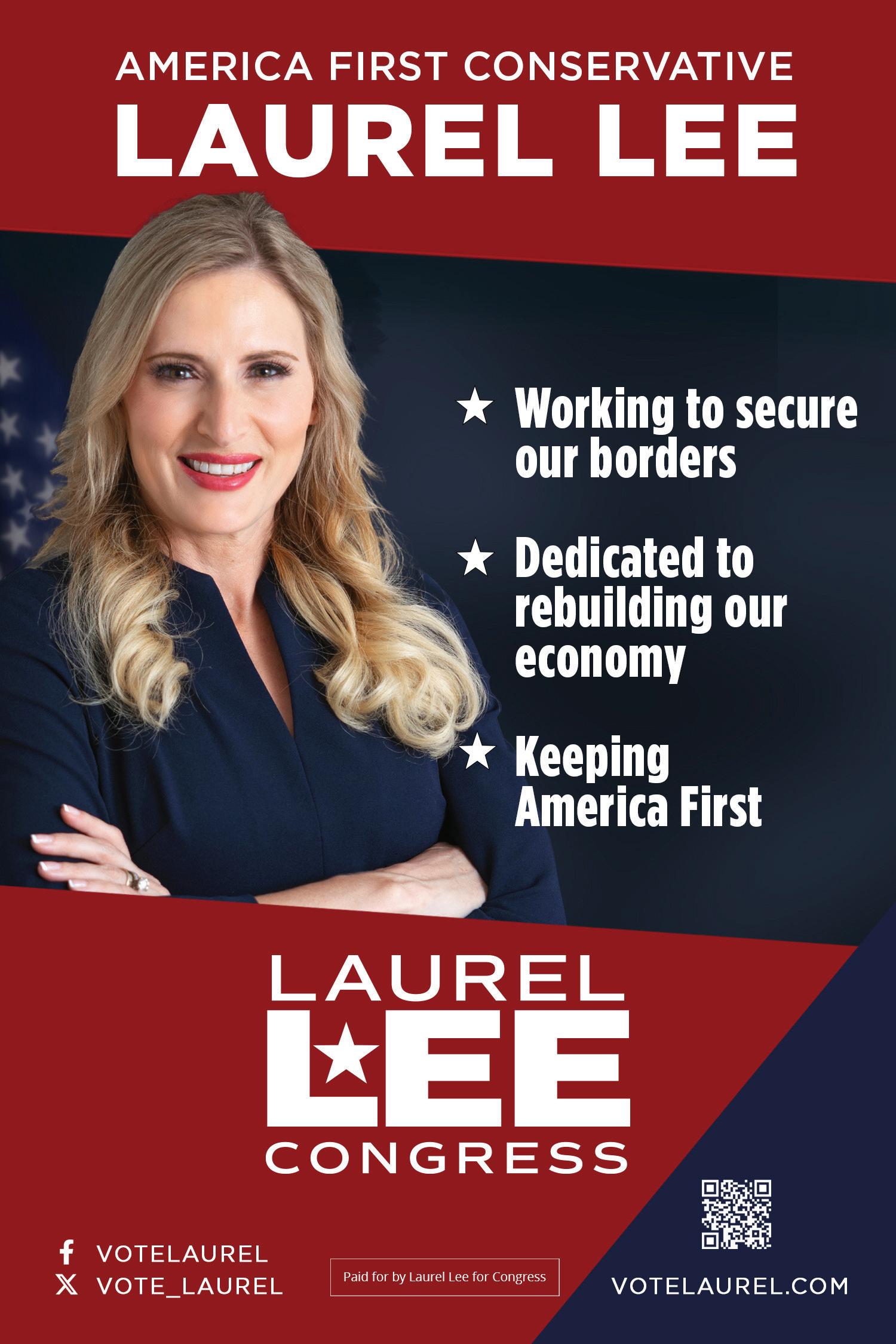 Laurel Lee was elected to serve the people of Florida Congressional District 15 in Congress on November 8, 2022, and is seeking reelection.
