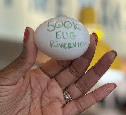 The community loves to be connected to the restaurant through the counting of the eggs. The guests at Eggs Up Grill enjoy taking a picture of the egg-counter display and comparing it every time they dine in. When Priscilla and John see guests attending each egg-count milestone, they feel pride in being able to connect with their community.