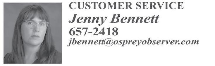 ADVERTISING Brooke Elkins 813-310-4434 belkins@ospreyobserver.com
