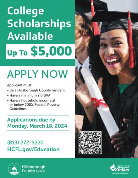 Students must be between the ages 16-24, have a high school diploma or a GED equivalent, be Hillsborough County residents and have a household income either at or below 200 percent of the Federal Poverty Guidelines of the Community Services Block Grant. If a student meets these criteria, they may apply for Hillsborough County’s Community Action Board Scholarship.