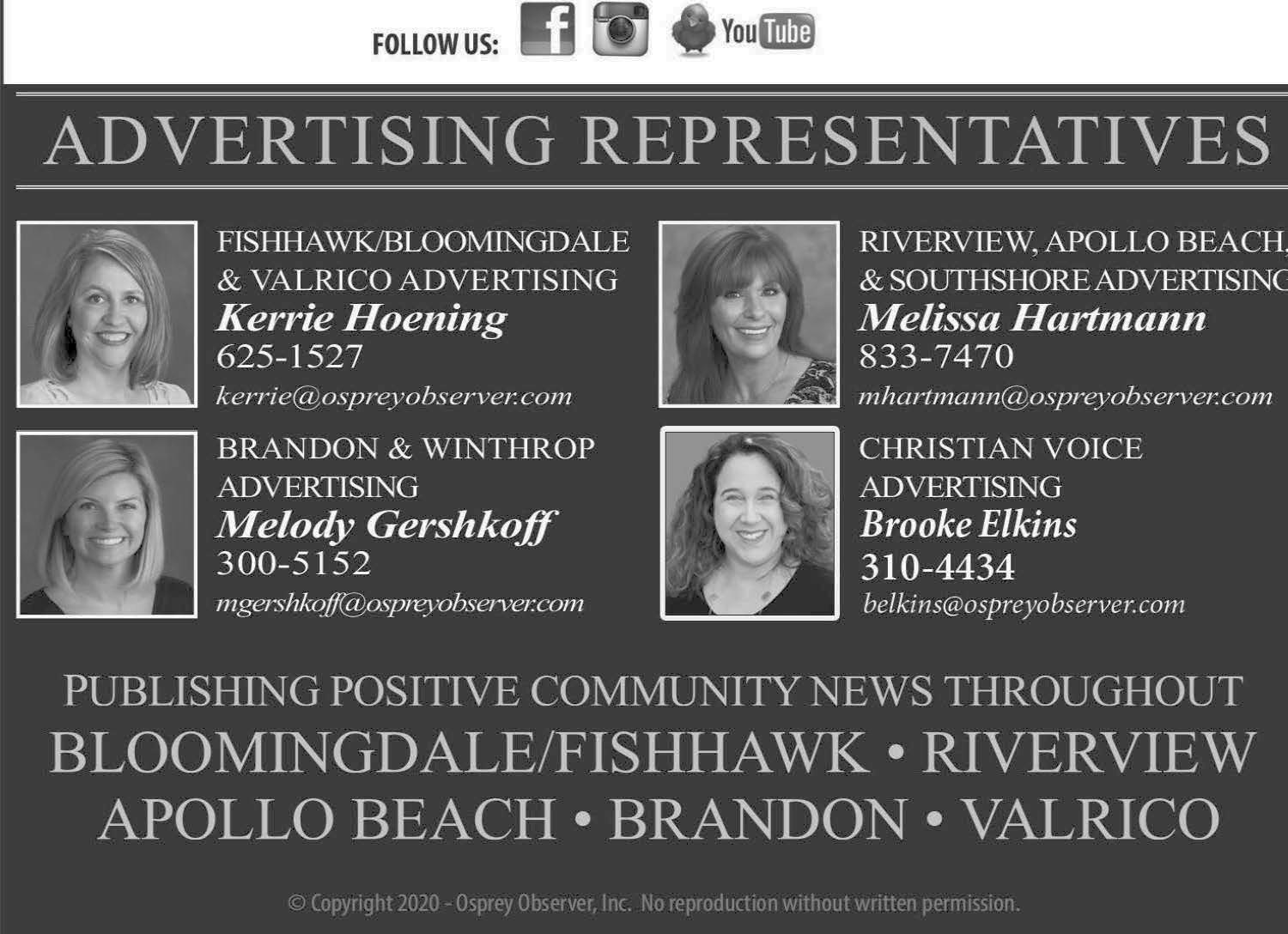 To learn more about ECHO, visit https:// echofl.org/. Call ECHO Riverview at 813540-9880. Call ECHO Brandon at 813-6850935. ECHO has two thrift stores in Brandon, one at 815 W. Bloomingdale Ave. and the other at 424 W. Brandon Blvd.