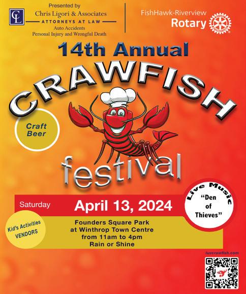 The Rotary Club is excited to bring the 14th annual Crawfish Festival presented by ‘Laissez le Bon Temps Rouler’ title sponsor Chris Ligori & Associates back for the community to enjoy good music, good food and good company. To learn more about the Crawfish Festival, prepurchase meals or sign up as a sponsor or vendor, please visit www. luvcrawfish.com.