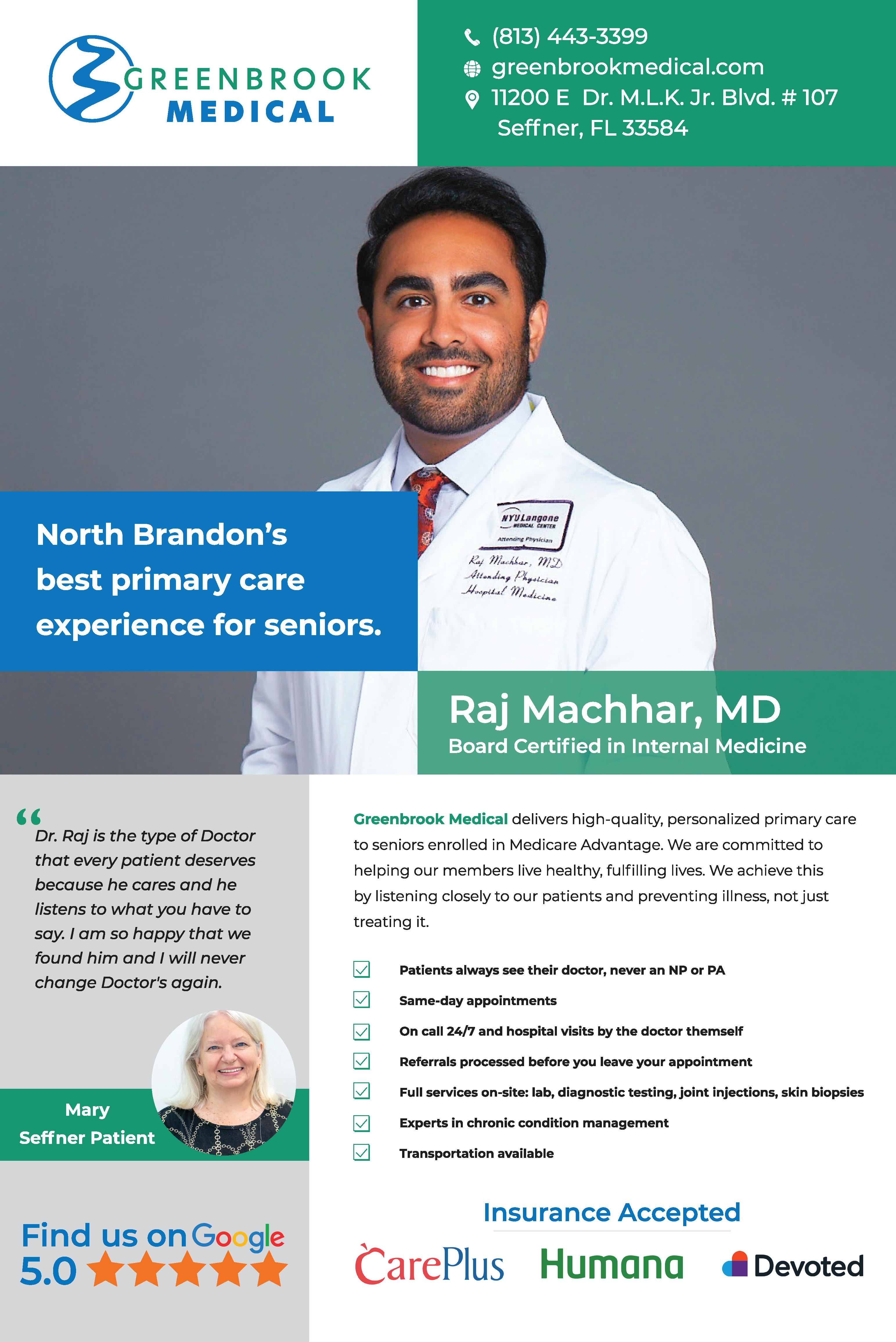 OF HELP NAVIGATING THE SYSTEM Success 4 Kids & Families is a nonpro nization that helps families, regardless of their income, navigate the system and get the help they need. 5 FREE CLASSES PLUS First Month 50% OFF Unlimited Membership* *New clients only. Expires 4/23/2023 CUSTOMIZED PERSONAL TRAINING Revolutionize Your Workout with 5 Gears of Health: • Cardio • Resistance • Mind / Body • Nutrition • Corrective Exercise Childcare Available HIIT Classes • Boot Camps • Cardio Classes • Resistance Classes • Barre • Pilates Yoga • Mobility Training • Sport Training • Customized Personal Training Moved to New Location: 405 Beverly Blvd. Brandon, FL 33511 813-662-4044 www.5GearFit.com Specializing in Care WHY CHOOSE US O Assisted Living Memor y Care Respite Care SCHEDULE A TOUR TODAY! 813-278-5800 SERIOUS ABOUT FUN 13470 Boyette Road, Riverview, FL 33569 813-278-5800 TwinCreeksRetire com An Assisted Living and Memory Care Community Providing a Superior Lifestyle Assisted Living Facility #13122 On-site Nursing Restaurant Style Dining Emergency call system Artist Corner Pet friendly Fitness center Movie Theater Library Conservatory- Grand Piano Full service Salon Physical Occupation and Speech Therapy ow just $5000* with a one year rate lock! Memory Care Special! Compan on suite $5000 private studio $5500 Ofers end 2/28/2023 3/31/23. $5935.