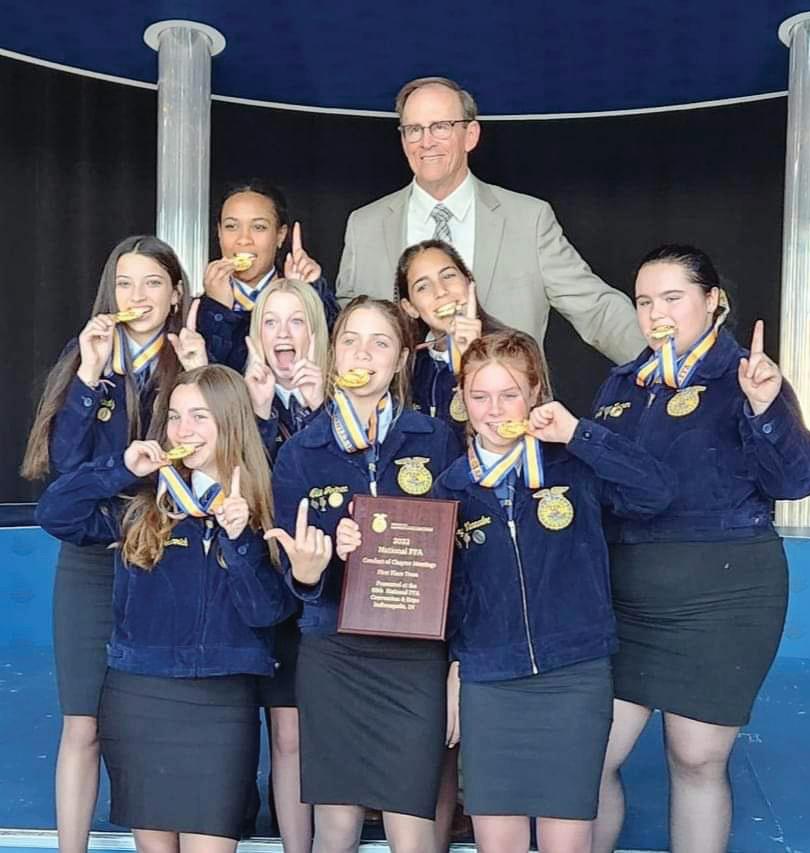The Future Farmers Association (FFA) at Barrington Middle School competed in and placed first at the Conduct of Chapter Meetings at the 95th FFA National Convention. Eight girls from Barrington Middle School traveled all the way to Indianapolis, Indiana to compete against 42 other states.