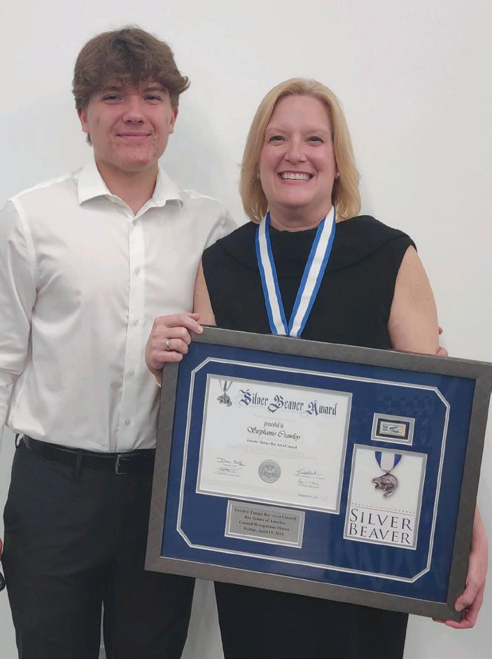 Te Silver Beaver Award is given to those who have shown distinguished behavior as a Scouter. Pictured is Stephanie Crawley with son Connor..
