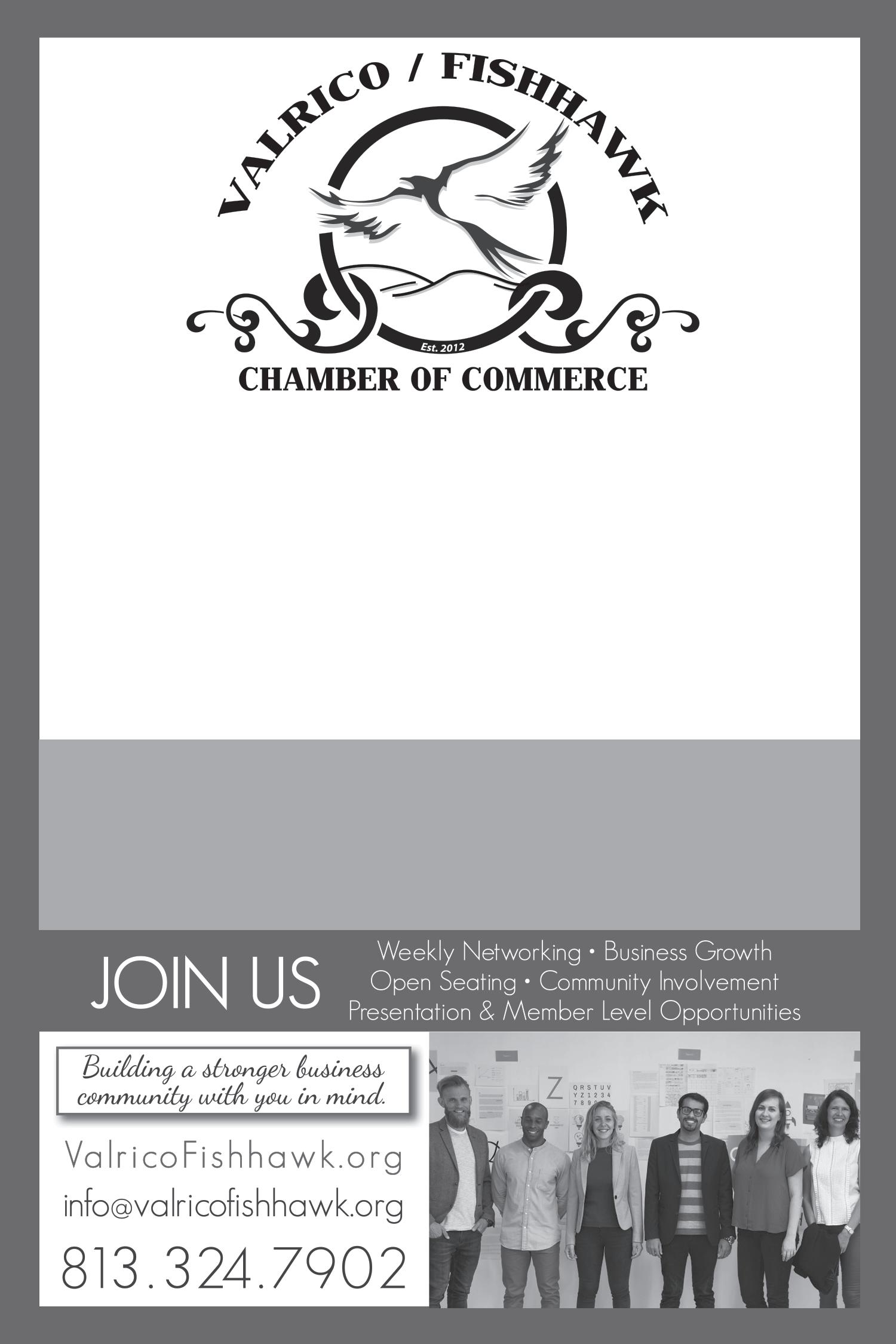 Valrico/Fishhawk Chamber of Commerce’s board of directors. Candidates must be at least 21 years of age and live, work or volunteer in East Hillsborough. They are required to uphold the appropriate conduct and demeanor benefiting the ofce they aspire to, both in their personal behavior and campaign activities.