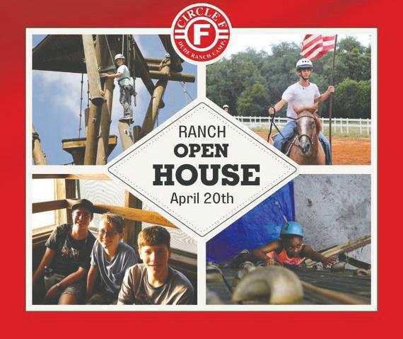 of Lake Wales on 500 acres with a private lake as the focal point of the camp. Campers choose from over 40 different activities, including horseback riding, water activities, climbing, team sports and western fun. Your camper will fi nd that Circle F really is “Florida’s best, most exciting, kid-friendly dude ranch experience.” Visit https://circlefduderanchcamp.com for details.