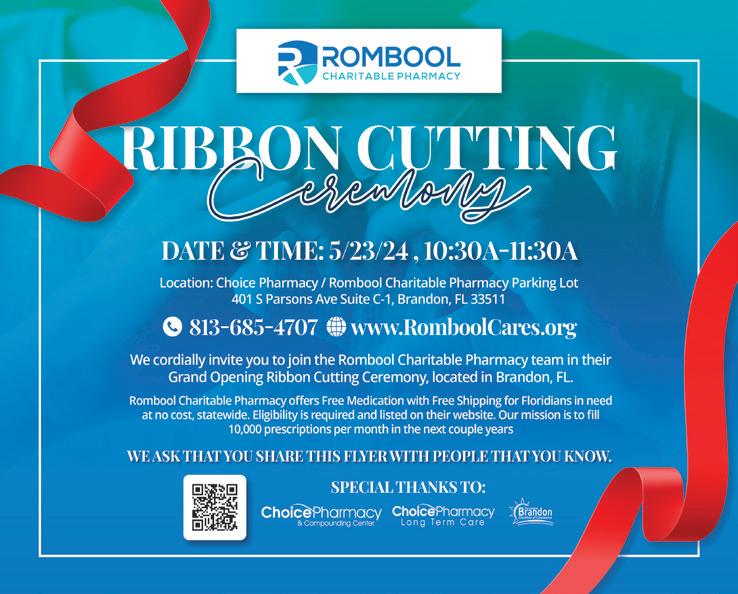 For more information about Rombool Charitable Pharmacy and its services, visit www.romboolcares.org or call 813-6854707. RCP is located at 401 S. Parsons Ave., Ste. C-1 in Brandon.