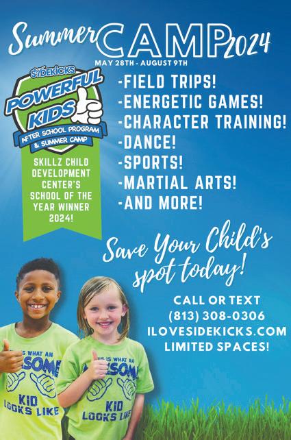 Little Medical School of Tampa Bay inspires healthy lifestyles in children. LITTLE MEDICAL SCHOOL OF TAMPA CAMP COMES TO BRANDON PAGE 33 Make Mathnasium part of your summer plans. (000) 000-MATH (6284) • mathnasium.com Contact Us For A Free Assessment! Summer at Mathnasium is a great way for kids to keep up their math skills so they’re ready to go in the fall. They’ll receive: THREE LOCATIONS TO SERVE YOU: Mathnasium of Brandon 813-655-MATH (6284) mathnasium.com/brandon 1048 E Bloomingdale Ave Valrico Mathnasium of Riverview 813-565-1102 mathnasium.com/riverview 13388 South US Highway 301 Riverview •A customized learning plan that details summer goals for long-term success •Live, face-to-face instruction, whether they learn in-center or virtually •A proven teaching method that results in true understanding and increased confdence Ask about our 3-month SUMMER TRIAL! Mathnasium of Brandon West 813-798-MATH (6284) www.mathnasium.com/brandonwest 1930 West Brandon Blvd Brandon