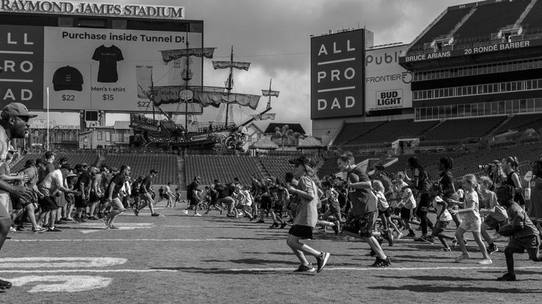 Kids and their dads were able to run out of the tunnel at the All Pro Dad Experience at Raymond James Stadium.