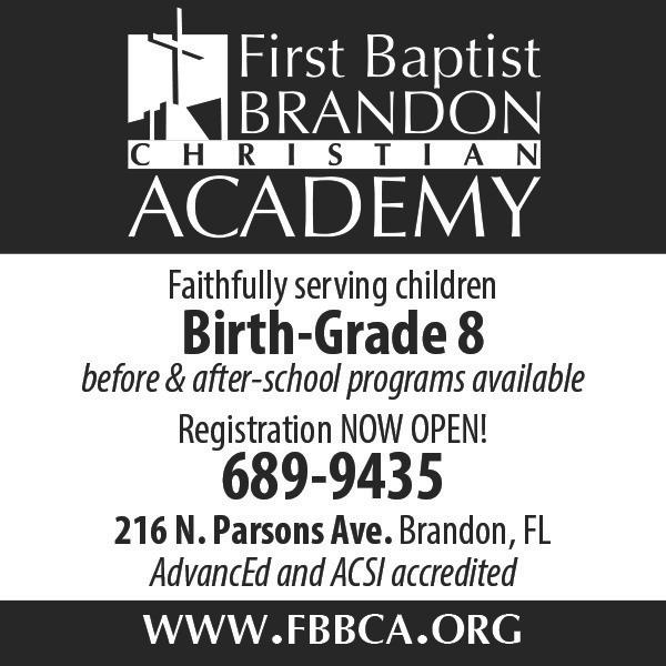 Page 20 ChristianVoiceMonthly.com January 2023 Dr. Priya Reddy M.D. FACR Board Certifed Rheumatologist Dr. Gina Prakash M.D. Board Certifed Rheumatologist Dr. Atefeh Vafa M.D. Board Certifed Rheumatologist Teena Lukose PA-C Specializing in treatment of: • Rheumatoid Arthritis • Psoriatic Arthritis • Osteoporosis • Gout • Osteoarthritis • Lupus On Site: • Lab • Ultrasound • Infusion Suite • Clinical Research www.SWFLRHEUM.com 813-672-2243 Accepting New Patients Most Insurance Accepted Two Convenient Locations: 11954 Boyette Rd., Riverview | 4002 Sun City Center Blvd. Ste. 101 NOW ACCEPTING TRICARE INSURANCE! 813.677.1301 9912 Indiana St. (Hwy 41 & Estelle Ave) Gibsonton, FL 33534 QUARTETS CONCERTS FOR 2023 FREE - Will Ofering SAVE THE DATE: Troy Burns Family Feb. 4 @ 6pm | Jim & Melissa Brady Mar. 11 @ 6pm | The Dixie Echoes April 1 @ 6pm January 13, 2023 @ 7pm U.S. Hwy. 41 • 106 11th Ave NE • Ruskin SaintAnneRuskin.org • 813-645-1714 Saint Anne Catholic Church ~Masses~ Vigil Saturday 4:30 p.m. Sunday8 a.m., 10 a.m., & 5 p.m. (12:30 p.m. Spanish) Monday-Friday 8 a.m. Wednesday & Jueves 7 p.m. Recorded Masses can be viewed on the St. Anne website (SaintAnneRuskin.org) and Facebook page. Reconciliation Tue. at 8:30am, Thurs. at 6pm, Sat. at 3:15pm and By Appointment. For more information, please check the St. Anne website. Registration is now open for the 2021-2022 Faith