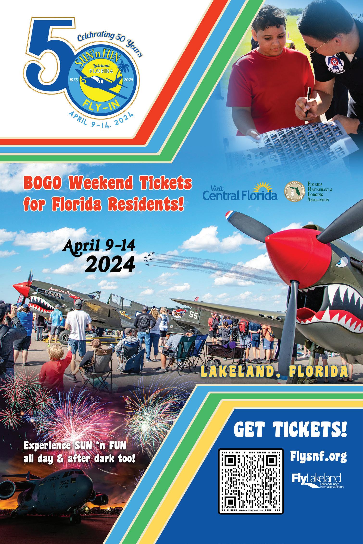 Weekly and single-day tickets to the 2024 SUN ’n FUN Aerospace Expo can be purchased online or upon arrival. Children 10 and under will be admitted for free. Detailed information about the fly-in can be found at https://flysnf.org/. Staf Report