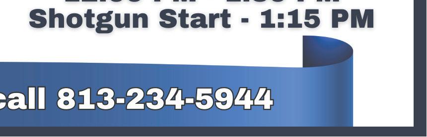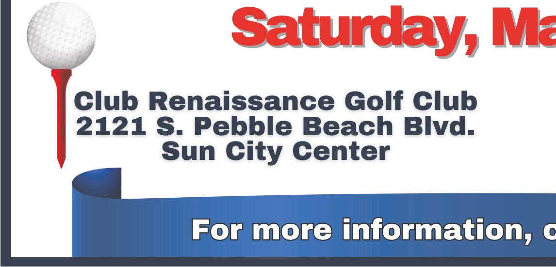 The annual golf tournament will take place on Saturday, May 18, beginning at 12 Noon. Golfers can walk through the midway of over 20 vendors, such as Gasparilla Pizza and Growlers, for food samples and other items until 1:30 p.m.