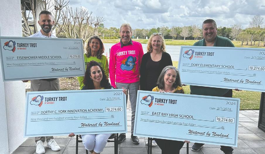 Waterset presented its community-record donation to four local schools following its Turkey Trot 5K and Kids Fun Run. The 2023 race, featuring more than 1,200 runners, raised over $36,000 for four local schools: Doby Elementary School, Dorothy C. York Innovation Academy, East Bay High School and Eisenhower Middle School.