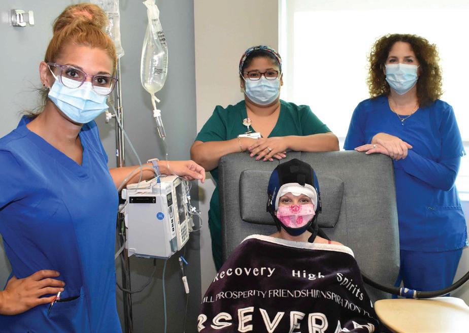 pearance and can lift their spirits during the time they are undergoing chemotherapy.” The DigniCap Scalp Cooling System consists of a computerized cooling unit managed through a touch screen display and an attached cooling cap. The cap is fitted to the head and temperature-regulated coolant continuously circulates through specially designed channels in the cooling cap. Scalp cooling limTe infusion center at St. Joseph’s Hospital-South is utilizing its the amount of chemotherapy the innovative DigniCap® Scalp Cooling System to help mini mize hair loss for chemotherapy patients. - agent delivered to the hair follicles. This causes cellular activity in the localized scalp area to slow dramatically. With these two reactions, the follicles absorb fewer chemotherapy agents and hair loss is significantly reduced. Scalp cooling is efective with many chemotherapy drugs, but not all. A doctor can determine if scalp cooling is compatible with a treatment. St. Joseph’s Hospital-South opened in February 2015. Part of BayCare Health System, St. Joseph’s Hospital-South features all-private patient suites and ofers emergency care, surgical services, imaging, intensive care, obstetrics, an NICU, cardiac catheterization and more in a peaceful, relaxing and family-centered environment. Located south of Tampa in Riverview, the all-digital, state-of-the-art facility is specially designed to make patients and visitors as comfortable as possible during their hospital experience. Learn more about St. Joseph’s Hospital-South’s infusion center at https:// baycare.org/hospitals/st-josephs-hospital-south/services/cancer.