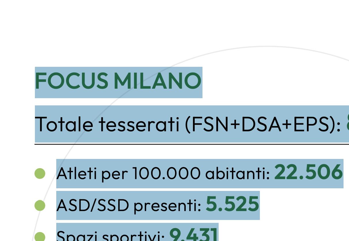 Milano è capitale economica ma anche città dello sport: ogni settimana migliaia di bambini e ragazzi partecipano a corsi, allenamenti, tornei; centinaia di migliaia di adulti trovano nello sport un modo per tenersi in forma, socializzare, affrontare le sfide della vita con maggiore equilibrio. Le università milanesi, con oltre 200.000 studenti, stanno potenziando programmi sportivi e borse di studio per