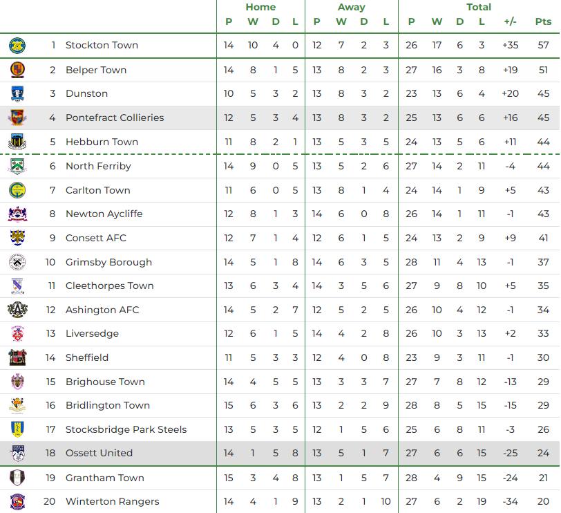 Results tailed off as the season ended with the club finishing in 15 th place and only avoiding a relegation play-off place on the last day of the season. The management team oversaw a major overhaul of the first team squad ahead of the 23/24 season and despite glimpses of positivity an inconsistency in results saw United sitting in 15th place when Black and Ossett United went their separate ways on 24 December.