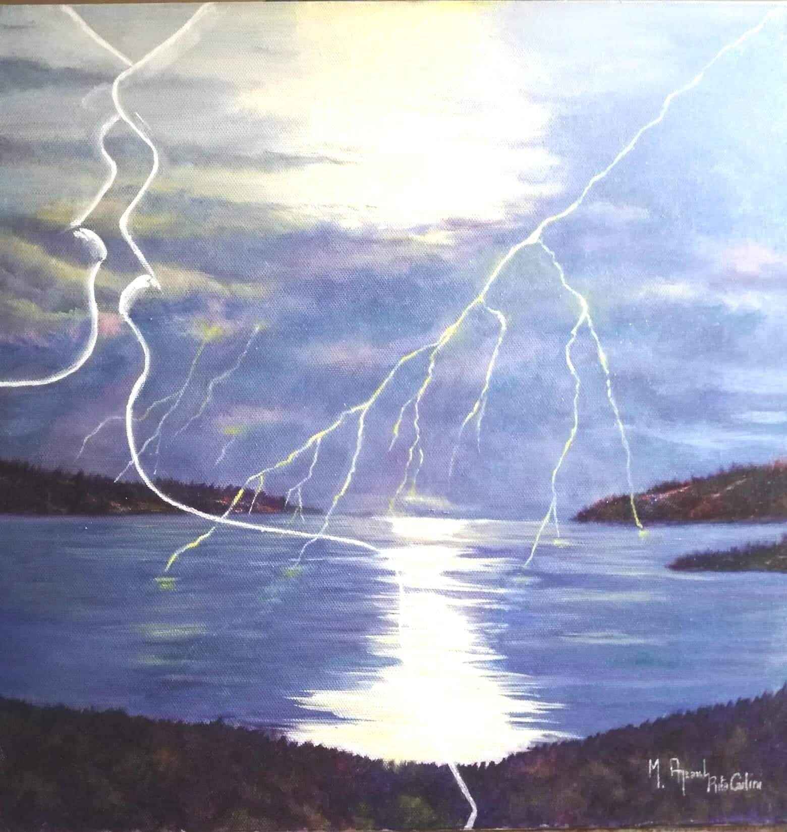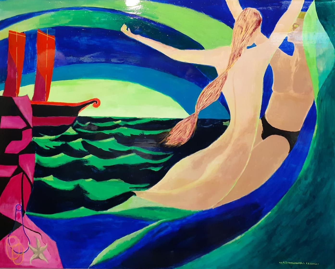 Bellissimi gli incroci cromatici di sfumature adamantine e questo mare mosso di onde a punta di diamante che nascondono tormenti e fluttuanti crisi (un mare in burrasca).
