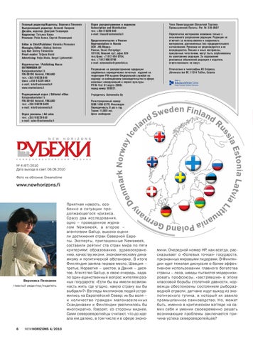 Главный редактор/Издатель: Вероника Пеннанен Выпускающий редактор: Алексей Смирнов Дизайн, верстка: Дмитрий Тихомиров Корректор: Татьяна Коски Реклама: Рейо Ахола, Сергей Ляховецкий Editor in Chief/Publisher: Veronika Pennanen Managing Editor: Aleksej Smirnov Lay Out: Dmitry Tikhomirov Proof−reader: Tatjana Koski Advertising: Reijo Ahola, Sergei Ljahovetski Издательство / Publishing House OSTROMEDIA OY Katajanokanlaituri 5 FIN-00160 Helsinki, FINLAND тел.: +358 9 6229 640 факс: +358 9 6229 6464 e-mail: info@ostromedia.fi www.newhorizons.fi
