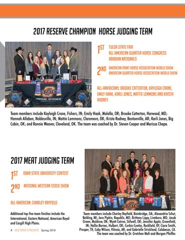 All-American: Charley rayfield Additional top-five team finishes include the International, Eastern National, American Royal and Cargill High Plains. 8 ALUMNI UPDATE Spring 2018Spring 2017 ALUMNI UPDATE 8