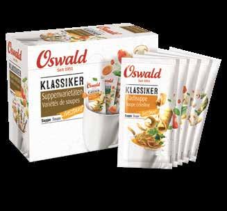 Molti dei nostri prodotti Classic sono realizzati da 30 anni secondo ricette tradizionali rimaste immutate nel tempo e portano nella vostra cucina quel sapore inconfondibile che tutte le famiglie svizzere apprezzano da generazioni. Che si tratti di un brodo o di una salsa, di un condimento o di una minestra, la gamma Classic di Oswald è semplicemente di casa.