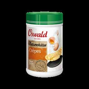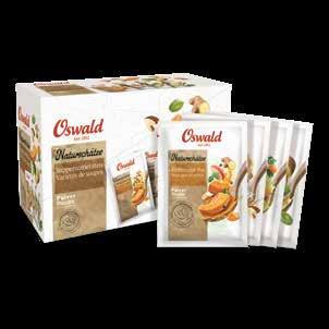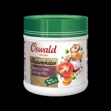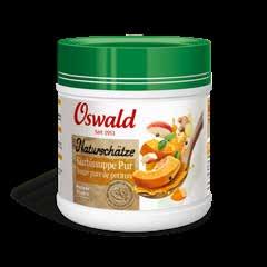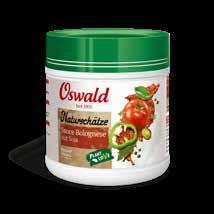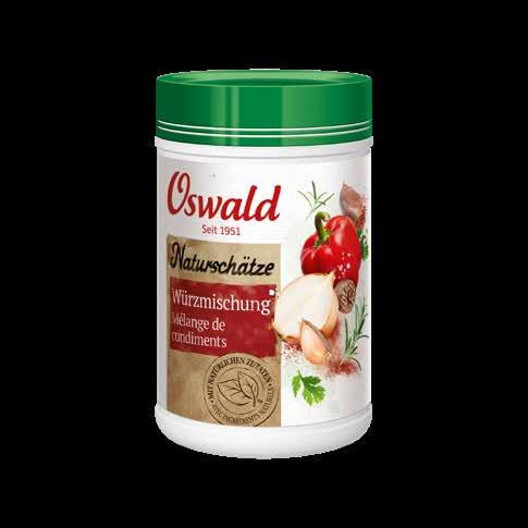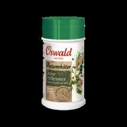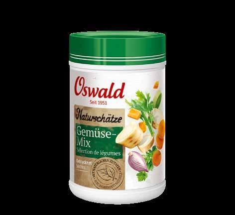 Con questa linea, Oswald vi offre una serie di squisiti prodotti che, con i loro ingredienti, rispondono al vostro desiderio di naturalità. Contengono materie prime che conosciamo e di cui riusciamo a seguire la lavorazione. Erbe essiccate, verdure e spezie vengono lavorate con delicatezza e secondo il metodo tradizionale, per poi essere valorizzate con altrettanta cura da Oswald. Questo procedimento permette non solo di preservare le sostanze nutritive degli ingredienti, ma anche il loro gusto naturale. Non vengono utilizzati né aromi artificiali né esaltatori di sapidità o conservanti. Rinunciamo anche all’impiego di olio di palma e grassi idrogenati, preferendo piuttosto il più pregiato olio di colza o di girasole. L’equilibrio dei sapori è completato dal classico sale da cucina e dal sale marino. Questa trasparenza negli ingredienti è una sicurezza in cucina. I Tesori della Natura di Oswald sono l’ideale per tutti coloro che amano i sapori naturali e che vogliono avvicinarsi di nuovo alla perfetta armonia della natura.