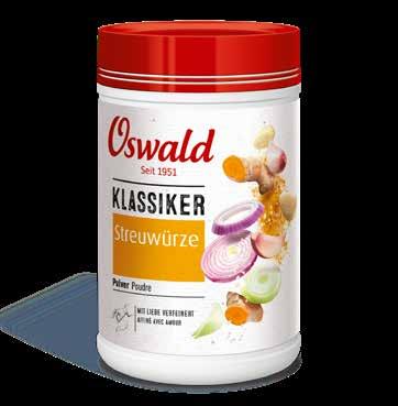 Dal 1951 Oswald è lo specialista di spezie e brodi. Già in giovane età, il fondatore dell’azienda Meinrad Oswald rimase affascinato dalle materie prime di tutto il mondo e così capì che la sua passione sarebbe stata quella di scoprire spezie uniche e ingredienti esclusivi con speciali procedure produttive. Questa tradizione dura fino ad oggi. Nella patria di Oswald, a Steinhausen, i nostri maîtres épiciers continuano a ricercare e sviluppare miscele di condimento raffinate e armoniose, combinazioni uniche e i migliori ingredienti per l’inconfondibile sapore Oswald.