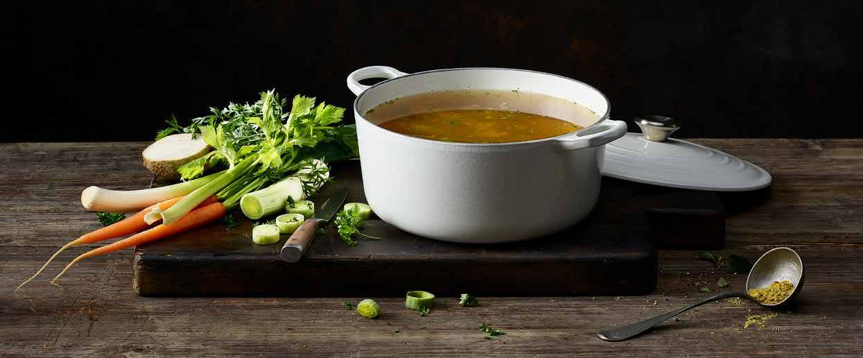 • Brodo vegetale senza grassi con una delicata nota di aglio