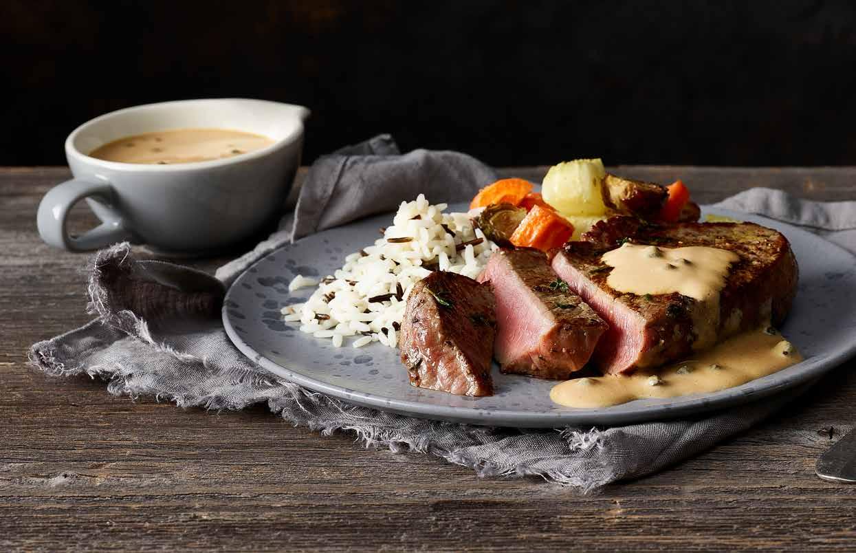 Combinato ad arrosto di vitello, Sunday Roast, costolette di manzo mature o altri piatti di carne, crea fantastiche perle gourmet.