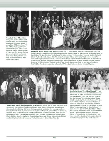 Tricia Kelly Henry ’97 and Eddie Henry were married in April 2004. Oswego alumni in attendance were: Meg Zurell ’97, Krissy O’Donnell ’97, Jenny Blase ’97, Colleen Feehan ’97, Pat Kelliher ’97, Gary Lubliner ’87, and Bobby Kelly ’94. Tricia is a second-grade teacher and her husband is a New York City fireman. The couple moved into their new home in Long Beach shortly after the wedding. Tricia says hello to all of her friends from Oswego.