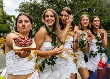 Tauira from Locals Collegiate Community get their togas on at an event this year. Locals is the biggest student community on campus, with a quarter of all first year students choosing to live at home, flat, or board. Find out more