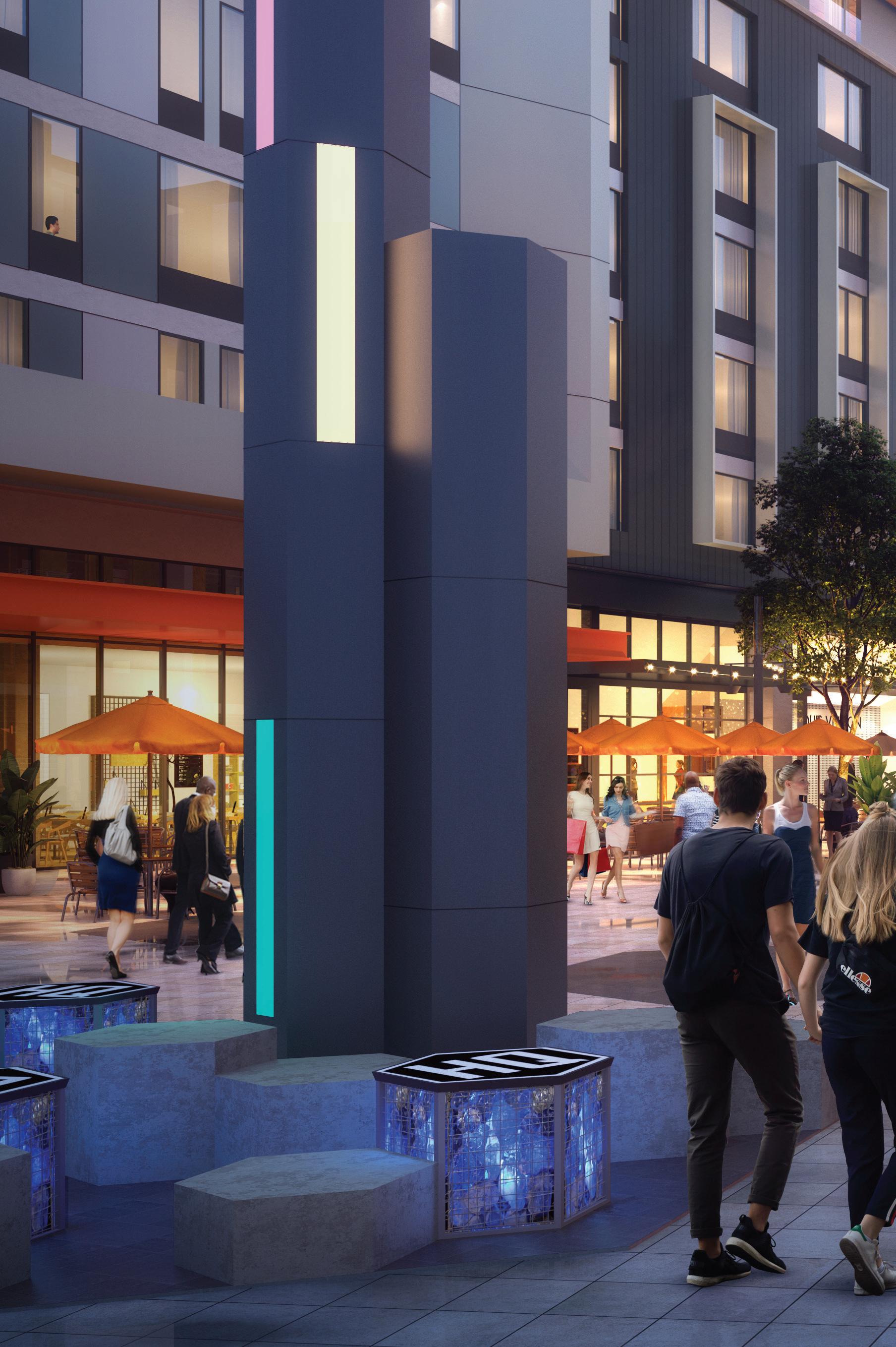 SIZE: 8,300 sf of micro retail; two-story restaurant & bar; 180-200 apartments with a mix of studios, & 1- & 2-bedroom units