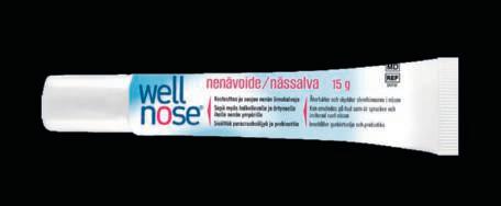Uudenlainen Wellnose® nenävoide sisältää runsaasti hoitavia rasvahappoja ja prebioottia kuivan nenän limakalvon ja rohtuneiden tai halkelevien nenänpielien hoitoon.