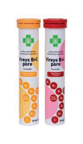 Valmisteen sisältämät C-, B2-, B3-, B5-, B6- ja B12-vitamiinit sekä foolihappo auttavat vähentämään väsymystä ja uupumusta.