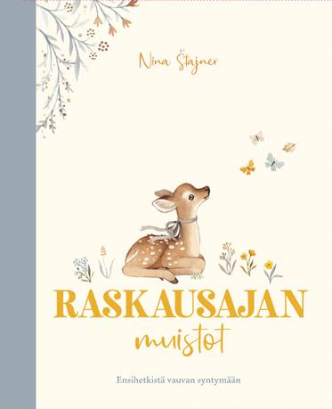 Kirjan mukana on myös kaksi kirjekuorta: toisessa voit säilyttää muistoja ja toiseen voit sujauttaa kirjeen lapsellesi. Kaunis kangasnauha sulkee kirjan.
