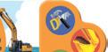 Rakennustyömaalla jyrisee ja paukkuu! Opi tunnistamaan työkoneita ja kuuntele työmaan ääniä painamalla ääninappeja. Samalla voit lukea tietoa työkoneista.