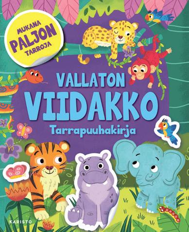 Tarrapuuhakirja sisältää isoja tarroja viidakon eläimistä ja mukavia puuhapulmia. Pikkuisille viidakon eläinten ystäville riittää monenmoista tekemistä pitkäksi aikaa.