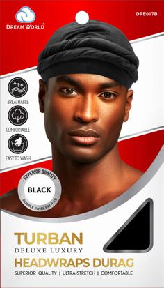 DREAM M-DURAG TURBAN HEADWRAPS BLACK DRE017B