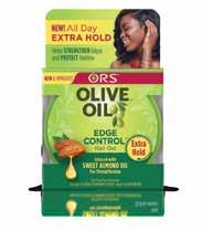 Olive oil together with sweet almond oil helps moisturize, strengthen, and protect edges, while delivering sleek styling and control. No whitening. No flaking. For all hair types and styles. Always hold on to your edge!