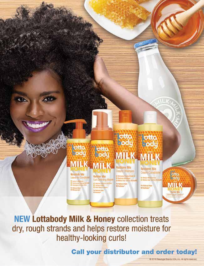 The new Lottabody with Milk and Honey collection is perfect for naturals looking for decadent, moisture retention. The five-piece collection includes shampoo, conditioner, curl defining mousse, leave-in conditioner and edge control. Guaranteed to impart intense hydration and defined curls.