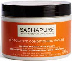 Revive your hair with the Sashapure Restorative Conditioning Masque. Its intense, hydrating formula brings hair back to life with its blend of certified, organic ingredients and Sacha Inchi oil. It also strengthens tresses that have been damaged by environmental aggressors, thermal styling and chemical treatments.