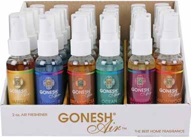 If your shoppers love Gonesh incenses, they’ll appreciate the convenience of the Gonesh Air Freshener Sprays. With six refreshing, 2 oz. scents to choose from – Vanilla, Lavender, Dreamcicle, Ocean, Raspberry and Sandalwood – they’ll have the convenience of smelling one of several popular Gonesh fragrances, no burning necessary.