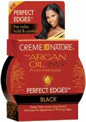 Olive oil together with sweet almond oil helps moisturize, strengthen, and protect edges, while delivering sleek styling and control. No whitening. No flaking. For all hair types and styles. Always hold on to your edge!