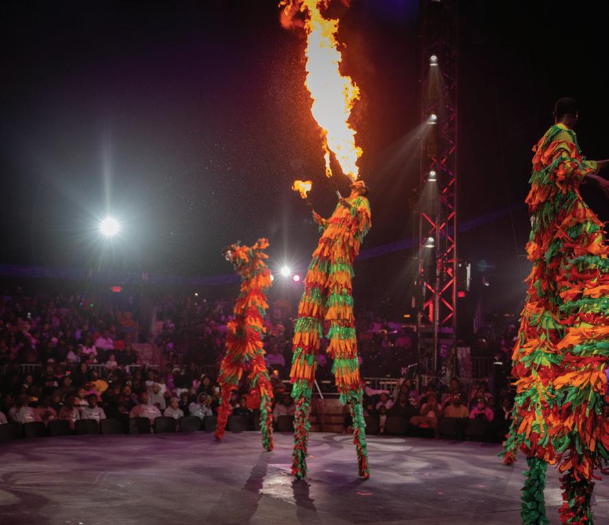 Audience favorites are also returning, including the Caribbean Street Carnival, which features 20-foot dancing puppets, fi re-breathing stilt dancers and vibrant folklore characters. The hiphop dancing Fresh the Clowns (with hundreds of thousands of social media followers) will have the crowd dancing, while the daring Wheel of Death stunt artists will keep everyone on the edge of their seats as they perform heart-stopping flips and dives 60 feet in the air.